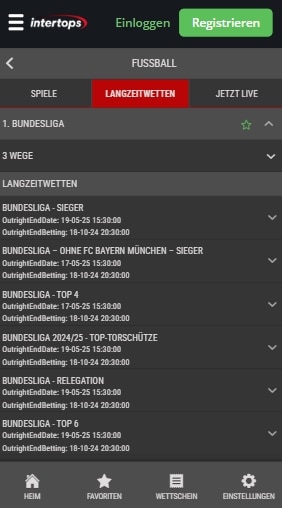 Unseren Intertops Erfahrungen nach ist der Quotenschlüssel bei Intertops sehr gut. Vor allem in den Top-Fußball-Europaligen ist der Buchmacher eine Klasse für sich.