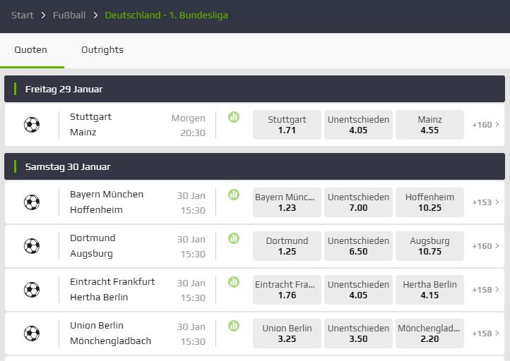 Der Quotenschlüssel in der Bundesliga liegt bei ganz guten 95 – 96 %. Damit liegt dieser Sportwettenanbieter im Vergleich mit der Konkurrenz im vorderen Feld.